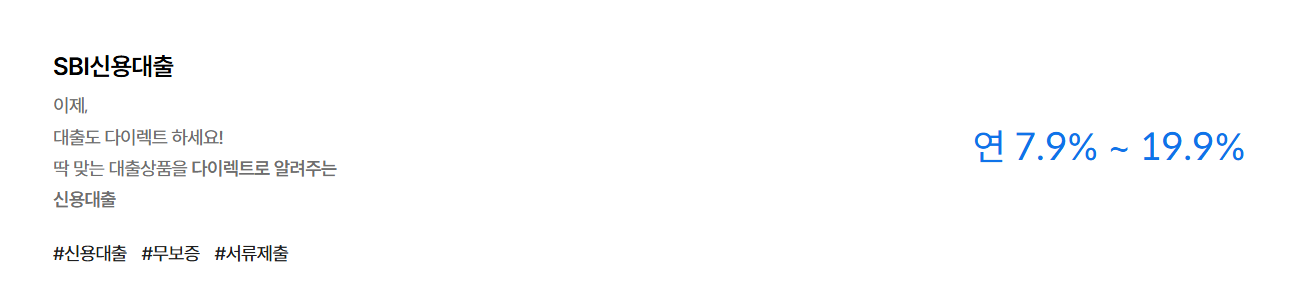 - SBI신용대출: 연 7.9% ~ 19.9%